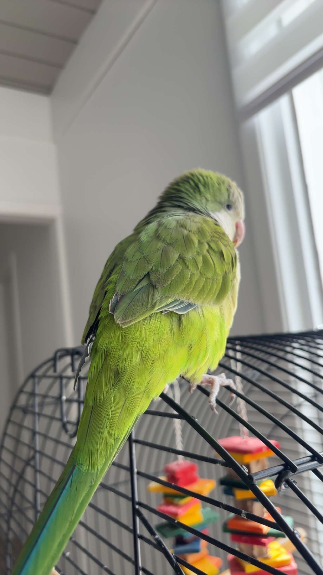 Lost green quaker named Rio in Châteauguay QC, near West Stanton Street and Salaberry North Blvd.