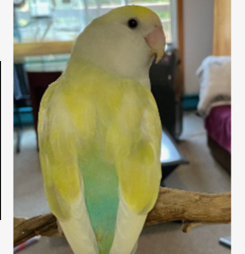 Lost yellow peach faced lovebird named PeeKaBoo in Montréal QC, Ahuntsic area, on Joseph-Melancon Avenue, H2M 2H8, nearby Ahuntsic College/ Centre Claude-Robillard