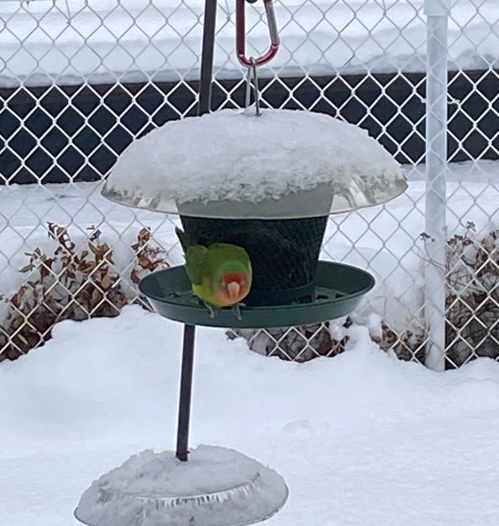 (21 sept. 2025) vu inséparable vert et orange à Arvida QC