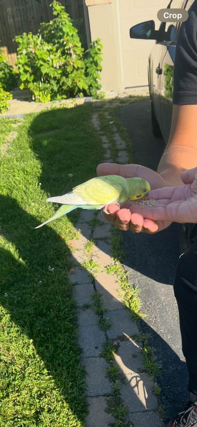 (23 juillet 2025) trouvé perruche jaune et verte à Dollard-des-Ormeaux QC