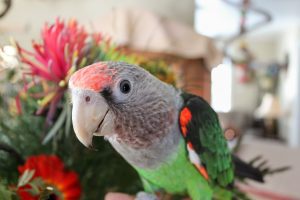 PERROQUET À CALOTTE ROUGE ou JARDINE