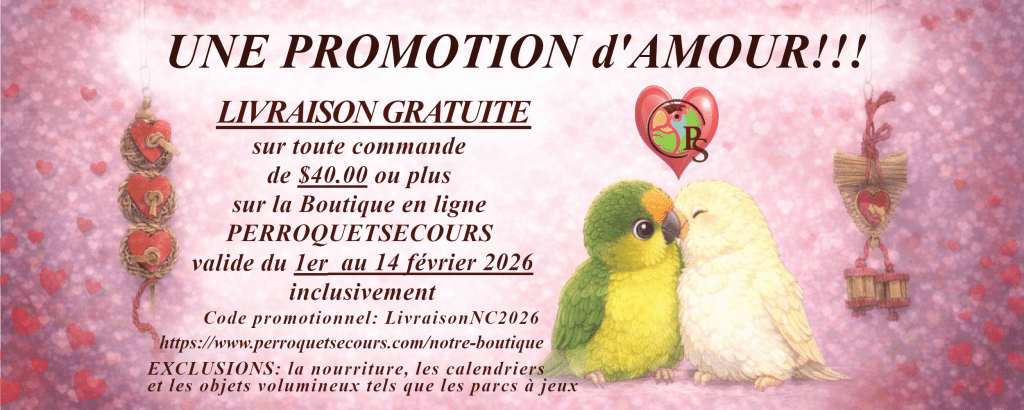 To see all our items for parrots and promotional items, press your cursor on the desired category. Order yours and help help birds in need!