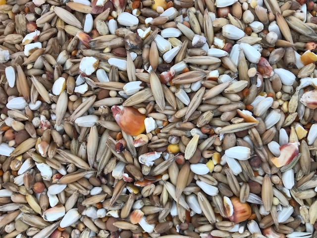 Safflowers, Almond oats, Round oats, Red corn, Cracked corn, Red milo, lentils.