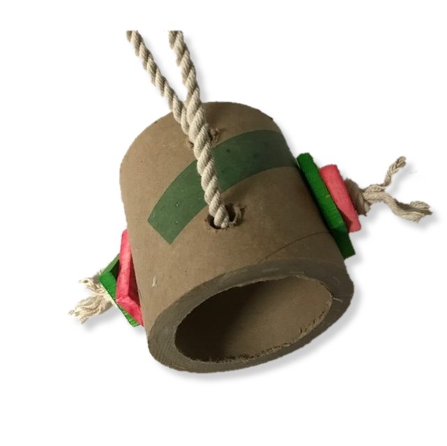 Petite grotte fait de carton recyclé et de bois, suspendu par une corde de coton. Vos petite oiseaux aimerons s’y cacher ou pour dormir.